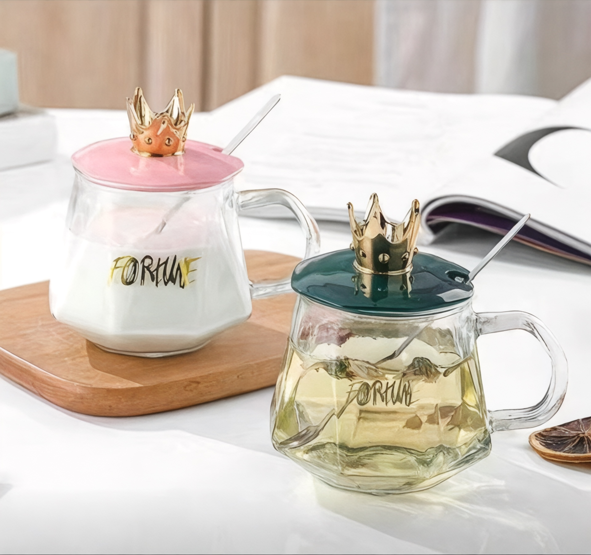 This glass cup features a durable, transparent design paired with a secure crown lid, ensuring spill-resistant use. Ideal for both hot and cold beverages, it offers a practical, stylish solution for everyday drinking needs. The crown lid helps retain freshness and prevents contamination, making this cup suitable for home, office, or outdoor use. Its robust construction guarantees longevity and ease of cleaning.